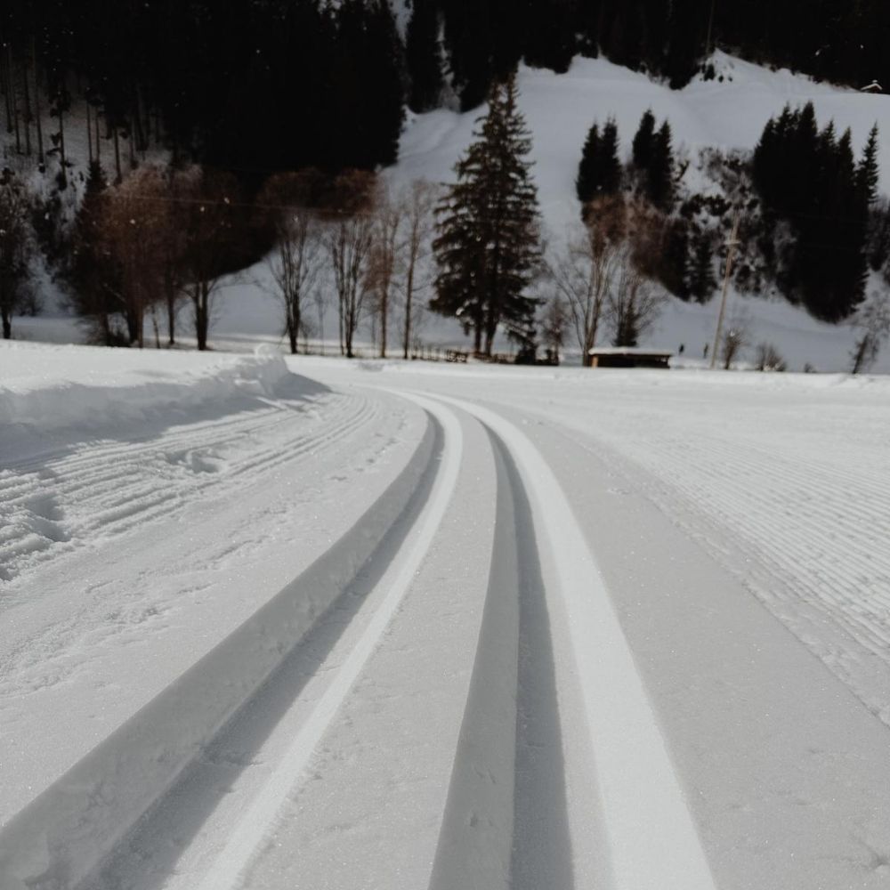 Von der Unterkunft aus direkt auf die Loipe – besser geht es kaum. Das Tal bietet bestens präparierte Langlaufstrecken durch eine stille Winterlandschaft. Gleichmäßiges Gleiten, der Rhythmus des Atems, das leise Geräusch der Ski im Schnee.