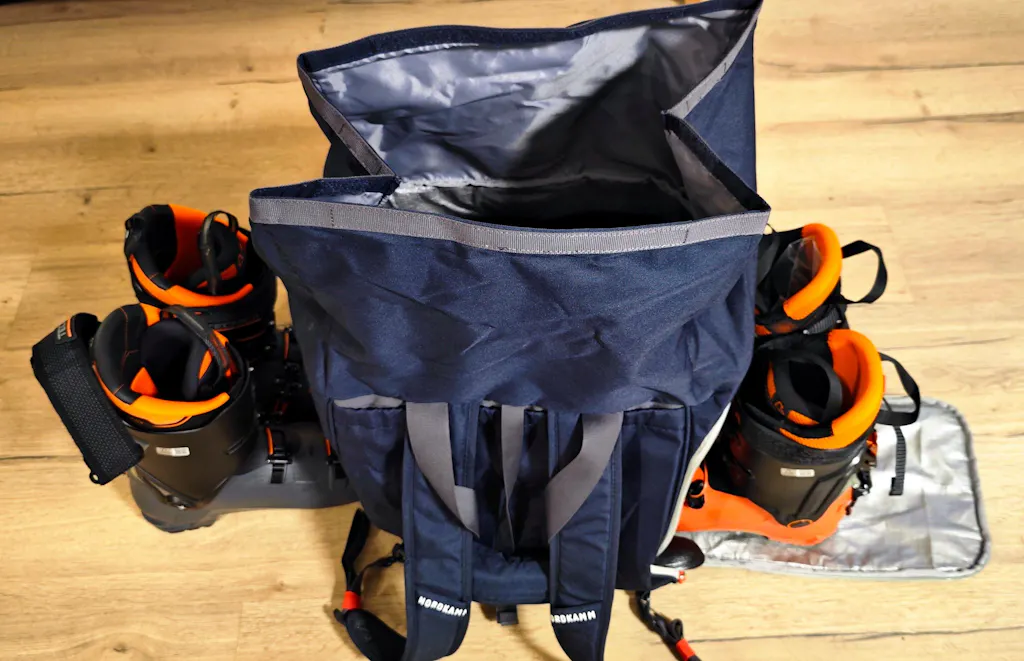 Die NORDKAMM Skischuhtasche im klassisch alpinen Design ist perfekt für alle, die top organisiert zum Skifahren oder Snowboarden wollen.